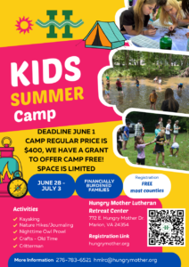Hungry Mother Lutheran Retreat Center is a camp, offering host your own retreats and summer camps. HMLRC is proudly affiliated with the Lutheran church and welcomes rental groups from all faiths and traditions.